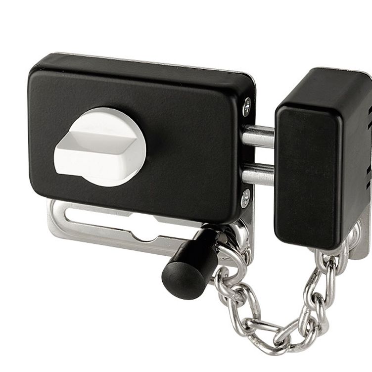 Model 1575 s retiazkou je možné použiť na pravé aj ľavé dvere. Pri uzamknutí zámky na jeden západ je možné otvoriť dvere na obmedzenú vzdialenosť tiahla, pri uzamknutí na dva západy je zaistené úplné uzamknutie dverí v ráme. Naviac si môžete zvoliť variantu so zvýšenou odolnosťou proti odvŕtaniu.
